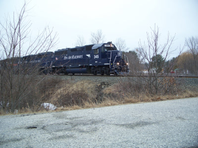 MEC 354 meets MEC 347 at New Gloucester East on April 11, 2005.