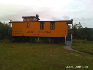This caboose was near the crossing in Hiram ME on the Mountain Division on the 24th of July 2010.