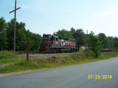Maine Central 376 WA-2 cans a work extra at Leeds Junction on the 23rd of July of 2014.