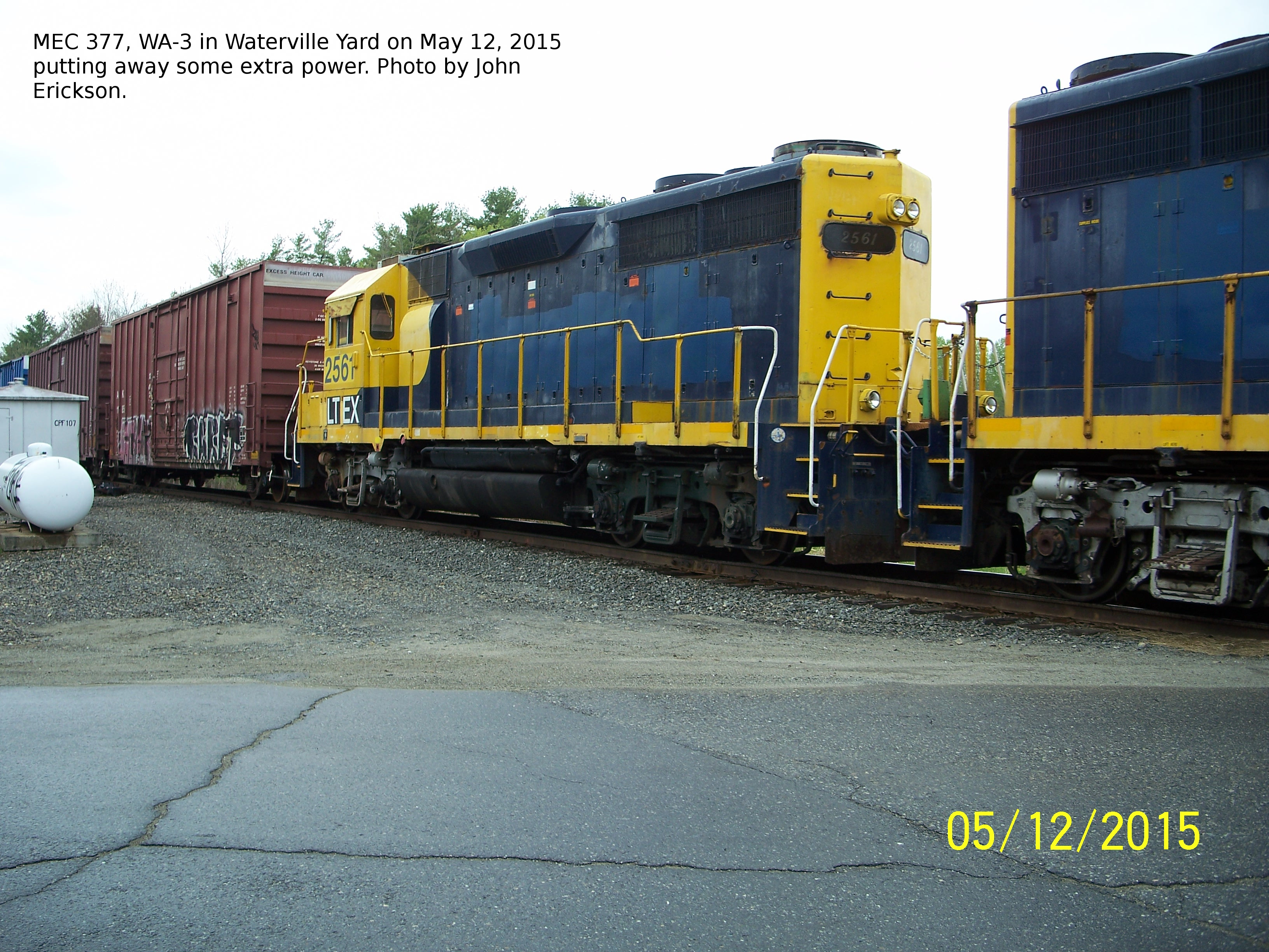 MEC 377, WA-3 in Waterville Yard on May 12, 2015 putting away some extra power.
